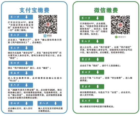 1.缴费方式本次学费缴纳仅可通过河南应用技术职业学院官方指定线上渠道办理,为唯一合法缴费途径,具体操作步骤如下: