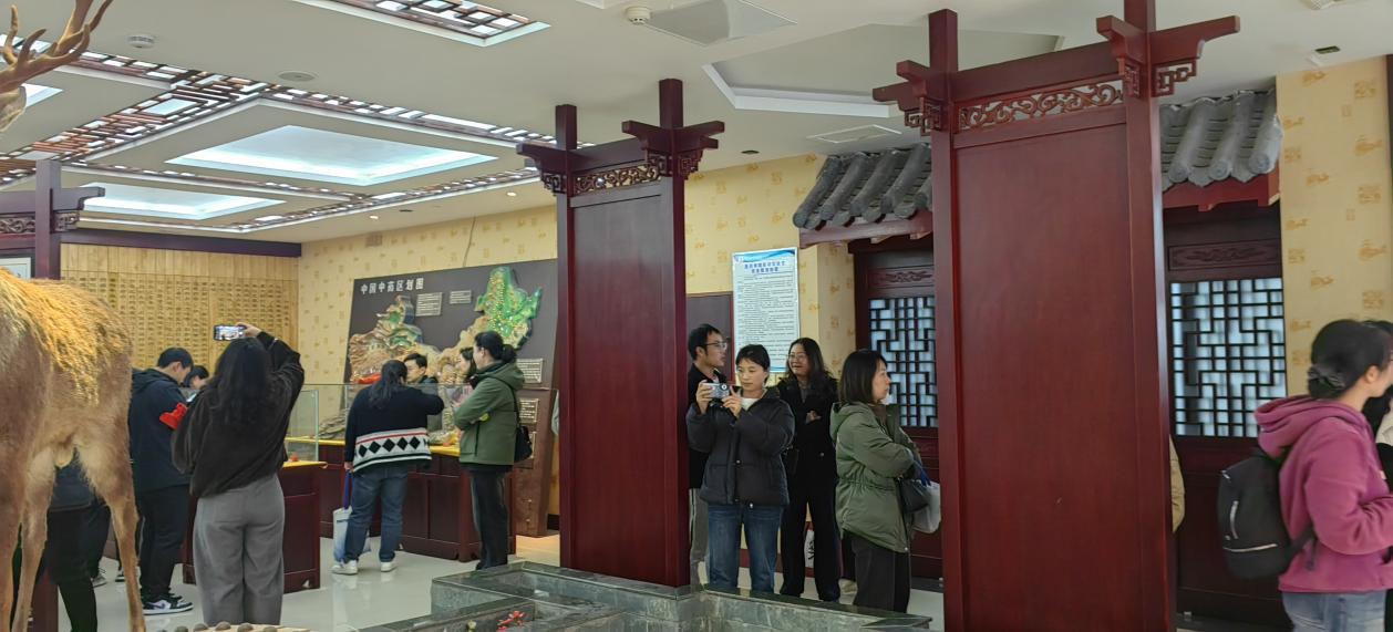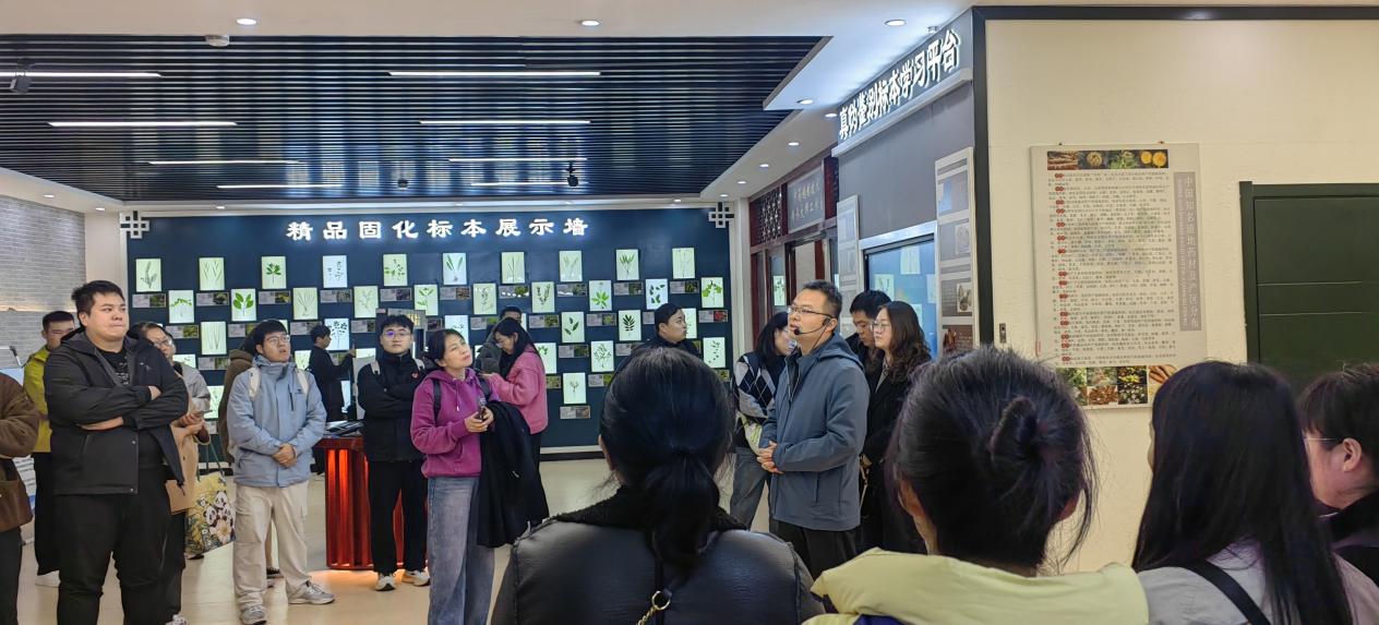 活动开始,张亮书记详细讲解了中医药博物馆的中医药传统文化区、中药标本区、中医药数字化互动展示区等三大主题展区。在中医药传统文化区,从古代中医药典籍复刻本到传统炮制工具,一件件珍贵展品串联起中医药的发展脉络,让学生们直观了解到中医药文化的源远流长;中药标本区内,数千种植物、动物、矿物类中药标本整齐陈列,张亮书记结合标本特性,详细讲解了药材的产地、性味、功效及鉴别方法,将书本中抽象的 “辨药识药” 知识转化为具象的实践认知;在数字化展示区,学生们通过手机扫码,沉浸式感受中医药与科技融合的创新魅力,进一步加深了对专业知识的理解与记忆。