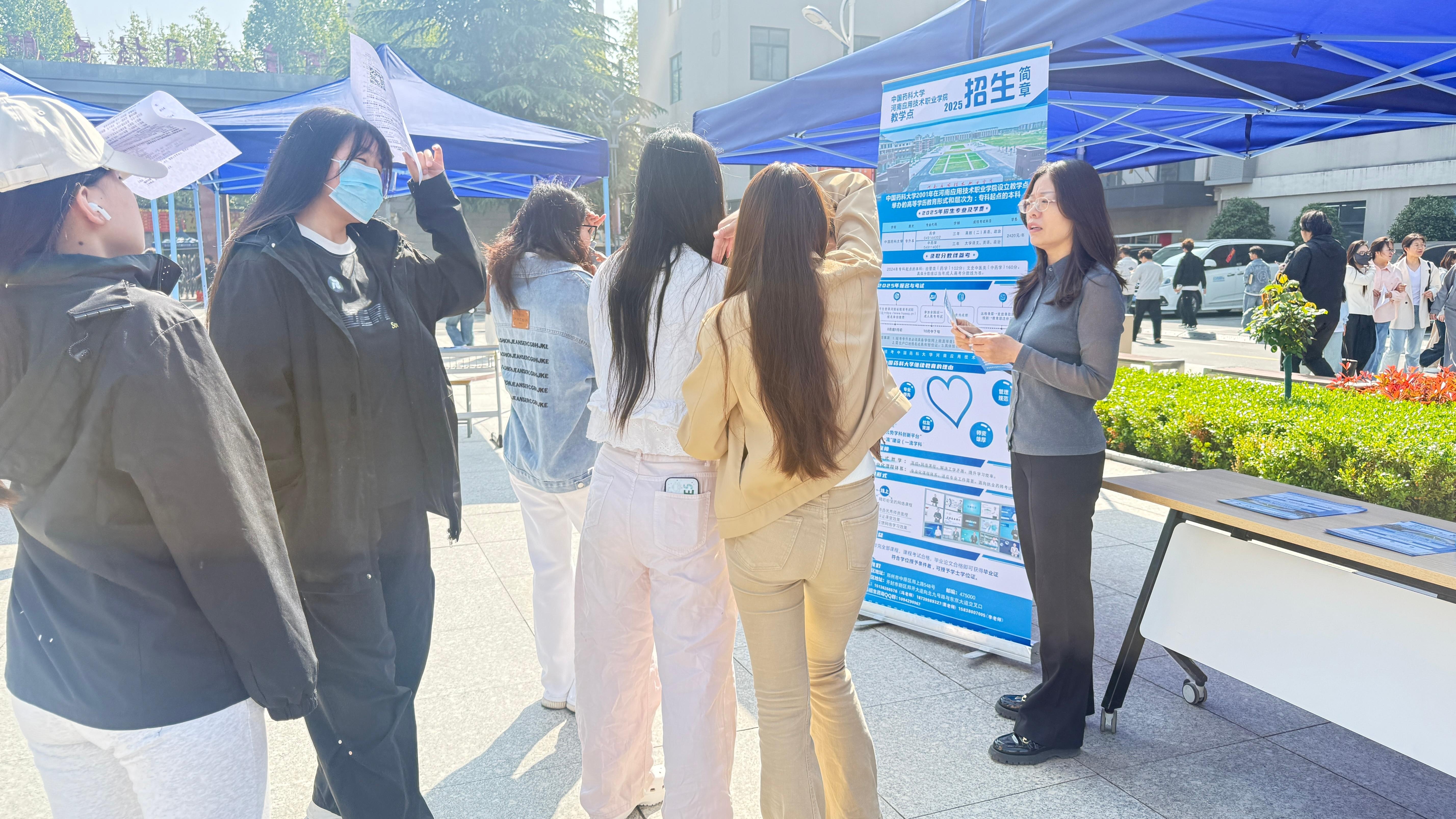 4月10日,在我校郑州校区北广场毕业生就业招聘会期间,中国药科大学河南应用技术职业学院教学点同步开展招生宣传活动,为应届毕业生搭建学历提升与职业发展的双向平台。